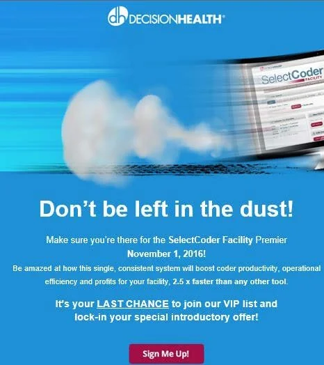 This multi-channel approach successfully positioned SelectCoder Facility as a game-changer in the hospital coding space—winning market share from entrenched competitors and fueling DecisionHealth’s expansion in 2017.